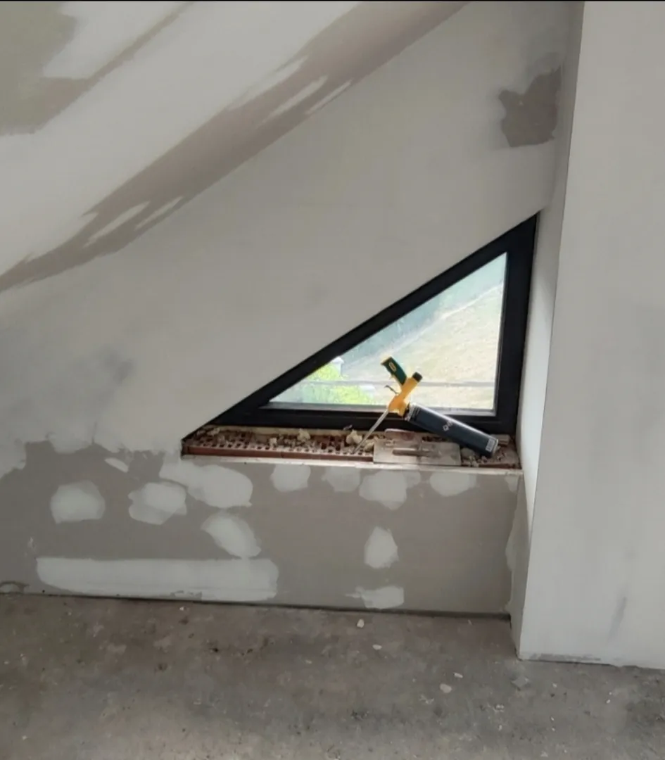 Nakon smanjenja kosine krova ostala je "rupa" koju treba zatvoriti s rigipsom i napraviti pregradni zid. Isto treba napraviti za kupaonu.