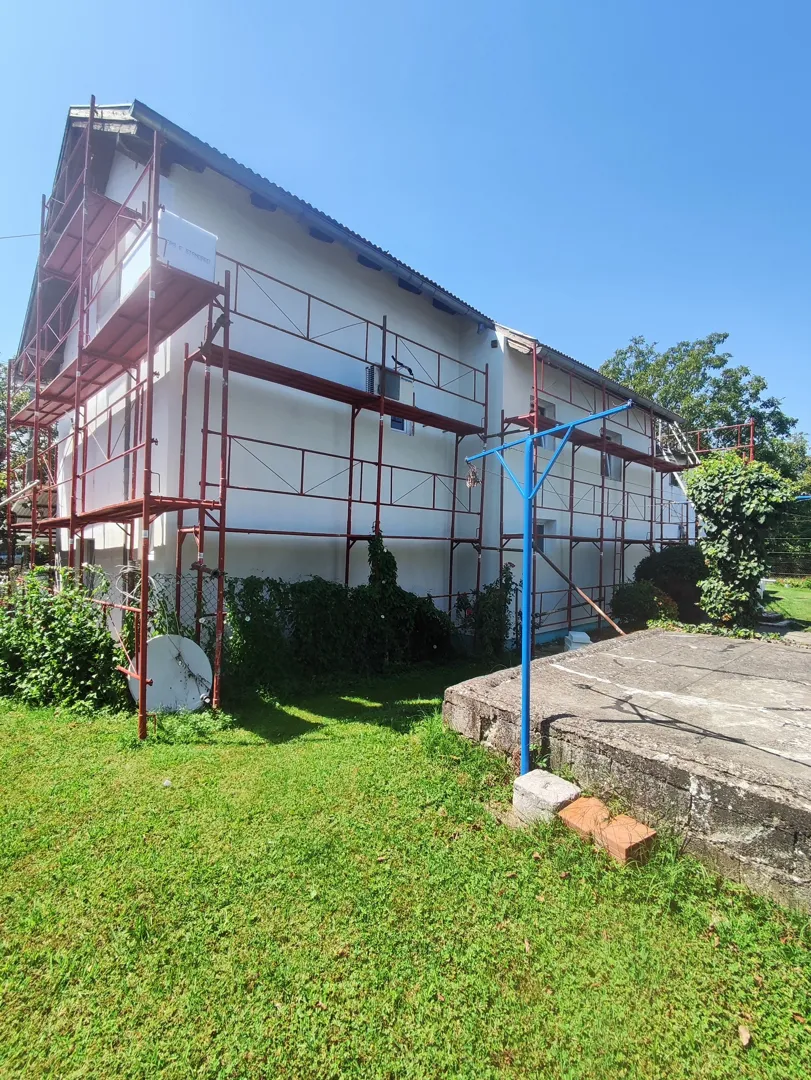 Na samostojećoj obiteljskoj kući potrebno je postaviti fasadu. Pročelje kuće je 16,5m. Prizemlje je kompletno obučeno u kamen. Fasada je potrebna samo za 1 kat sa tri strane, te sa prednje i zadnje strane za potkrovlje. Sve tri strane kuće imaju stolariju. Bočna strana kuće ima cca. 9m i visinu od 2,8m.