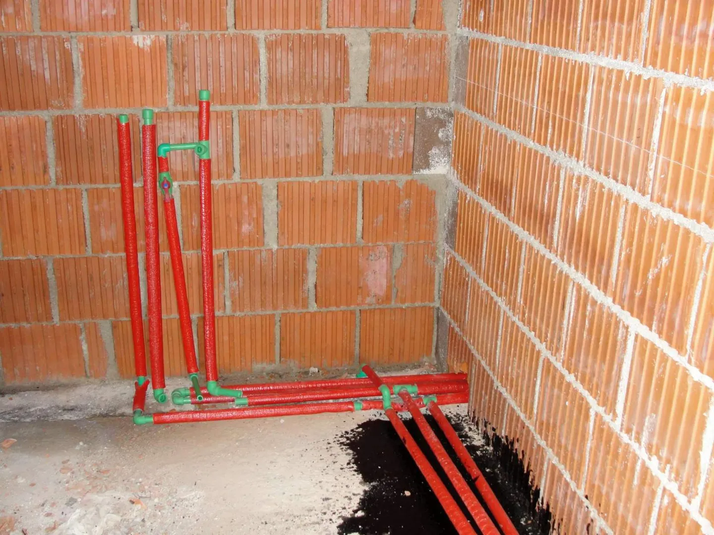 Grube vodovodne instalacije počinju se postavljati čim se završi izgradnja nosivih zidova. Prvo se ispod žbuke i podova postavljaju vodovodne cijevi, potom se montiraju razvodna odvodna instalacija te razvodni vodovi za hladnu i toplu sanitarnu vodu. Cijevi moraju biti usmjerene prema razvodnoj kutiji koja je spojena na priključak za dovod vode na vodomjeru. U ovoj se fazi ugrađuju odvodi i filteri za uklanjanje pijeska te uređaj za snižavanje tlaka. Nakon ugradnje završnih zidnih i podnih slojeva na red dolaze fine vodovodne instalacije, tj. spajanje i ugradnja sanitarnih elemenata.