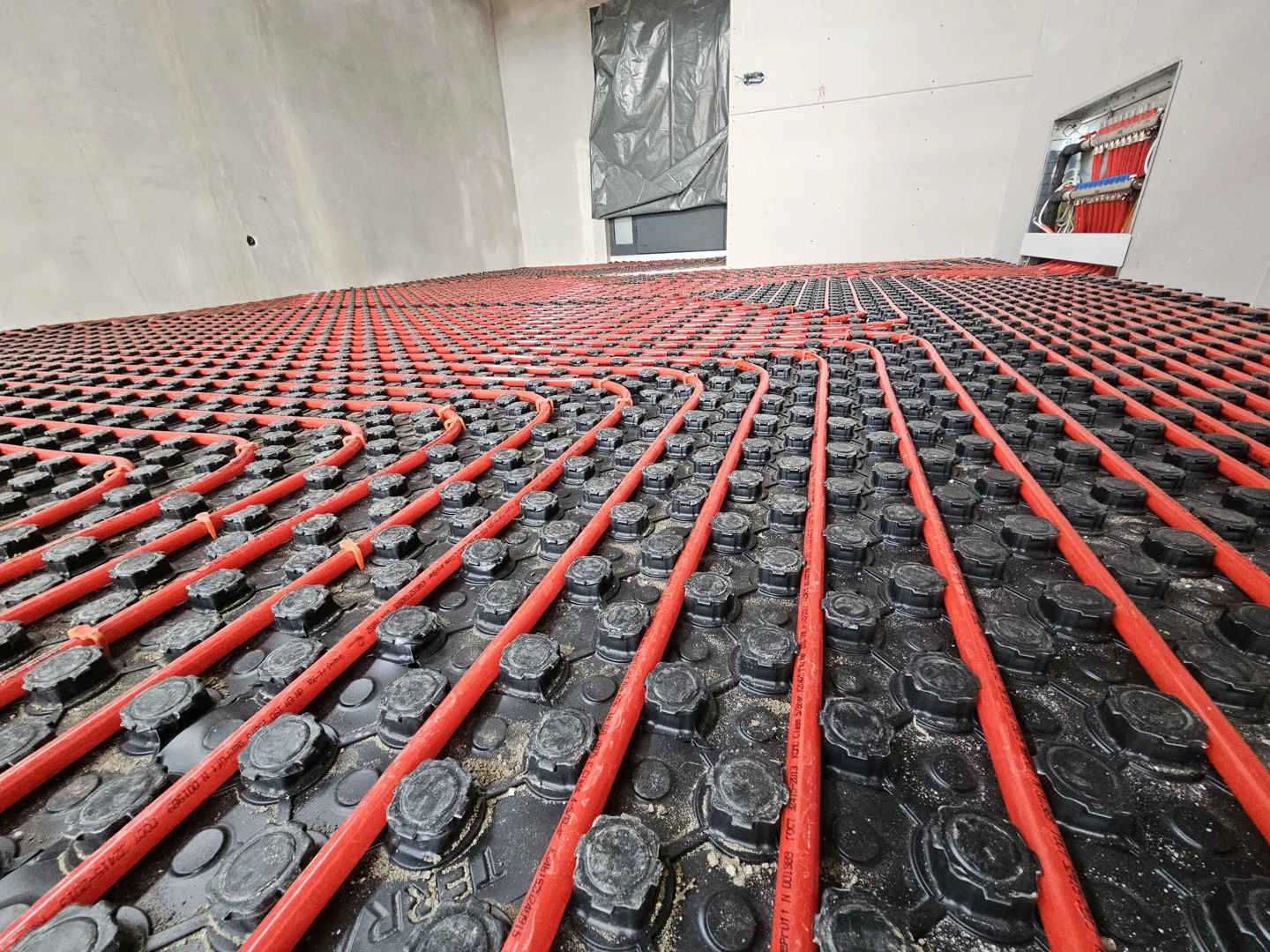 Grube vodovodne instalacije počinju se postavljati čim se završi izgradnja nosivih zidova. Prvo se ispod žbuke i podova postavljaju vodovodne cijevi, potom se montiraju razvodna odvodna instalacija te razvodni vodovi za hladnu i toplu sanitarnu vodu. Cijevi moraju biti usmjerene prema razvodnoj kutiji koja je spojena na priključak za dovod vode na vodomjeru. U ovoj se fazi ugrađuju odvodi i filteri za uklanjanje pijeska te uređaj za snižavanje tlaka. Nakon ugradnje završnih zidnih i podnih slojeva na red dolaze fine vodovodne instalacije, tj. spajanje i ugradnja sanitarnih elemenata.